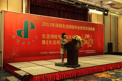 5月27日晚在深圳星河丽思卡尔顿酒店隆重举行了“2013深圳生活用纸年会开幕贵宾欢迎晚宴及生活用纸委员会创建20周年”庆典活动和。协办单位维达集团张东方首席执行官,广东百顺利莉董事长、房雨副总经理,金红叶纸业徐锡土总经理,中顺洁柔岳勇营运总裁及生活用纸行业内著名企业的负责人等90多人出席仪式。