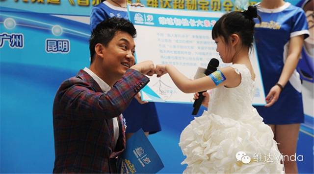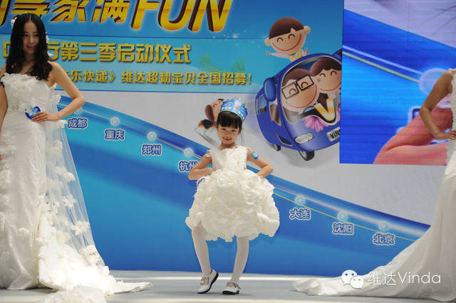 听李锐娓娓道来对女儿最深情的告白,现场的爸爸妈妈无不动容。李锐的女儿跳跳身穿维达的特色产品纸巾婚纱走秀出场,唯美的纸巾婚纱配上天真可爱的萌娃,给现场的观众带来了一场视觉上的盛宴。