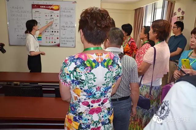 老人的房号分别被命名为“苹果屋,香蕉屋”,护理老人床头的“棒棒糖”符号表示糖尿病患者,整个空间里闻不到一丝异味更是让人心生感叹。和睦老人公寓里的细节都在无声的体现着老人护理的精细与规范,让考察团成员获益匪浅。
