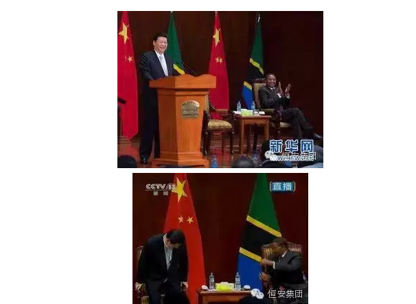 外界很多人认为一定是恒安花了大价钱,做了广告公关,其实不是,并且这个事情还很简单:坦桑尼亚的客户,是一位华人,之前在当地做工程方面的生意,后来想转型,在展会上找到我们,成为我们的客户。他进了一个货柜的纸巾,卖了大半年都没卖完。这个人的公关意识很强,他知道习主席到访在当地是个大事件,他就找到我们的大使馆,表示愿意在习主席做演讲时,给会议中心无偿赞助50箱心相印纸巾。宣传国货当然是个好事,大使馆就同意了,后来的情况我们在电视上、报纸上看到了——港版的心相印茶语经典纸盒,摆在习主席和坦桑尼亚总统的面前。