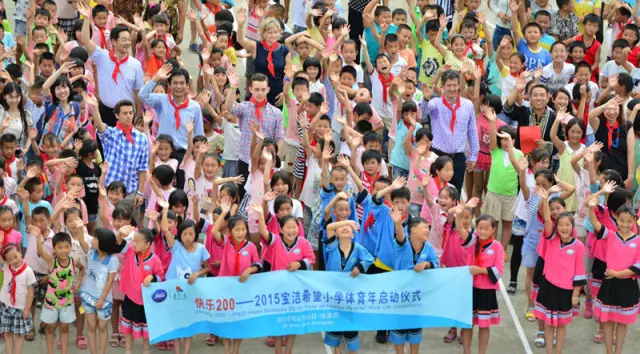2015年6月26日,“快乐200——2015宝洁希望小学体育年”在湖南张家界教字垭镇宝洁希望小学正式开启,为当地18个教学班的858名土家族小学生带来了快乐与欢笑。宝洁大中华区总裁马睿思(Matthew Price)、中国青少年发展基金会(以下简称青基会)秘书长涂猛出席了活动,并将一份特殊礼物“宝洁快乐戏剧操”带给了现场师生。