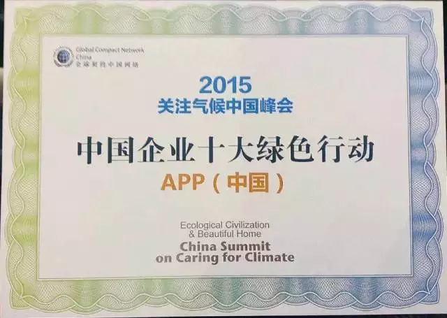 在全球契约中国网络主办的“关注气候中国峰会”上,APP(中国)凭借其历年来践行绿色低碳发展的卓越佳绩入选“中国企业十大绿色行动”,并被作为减排典范企业案例收录进《关注气候-中国在行动》成果集,该成果集之后也将由联合国全球契约组织提交至12月在巴黎举行的联合国气候变化大会。