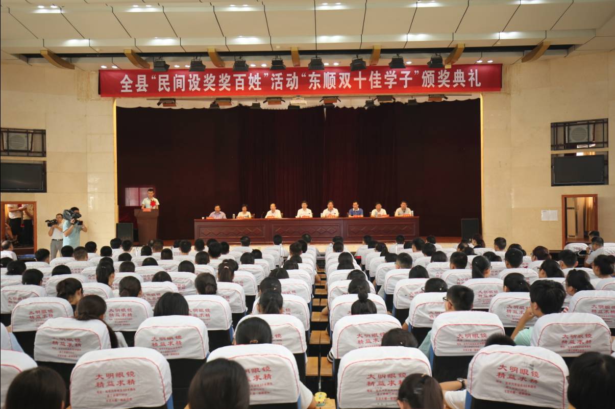 2016年8月10日,“东顺双十佳学子奖”颁奖仪式在东平高级中学报告厅隆重举行。东平县县委书记赵德健,县政协主席刘祥涛,县委常委、副县长宫庆会,县委常委、宣传部长陈锋,县人大常委会副主任陈兰芳,县政协副主席赵永恕,县政协秘书长李存社、东顺集团董事长陈树明、经营总裁陈小龙、副总裁张士华出席颁奖仪式并为获奖学生颁奖。