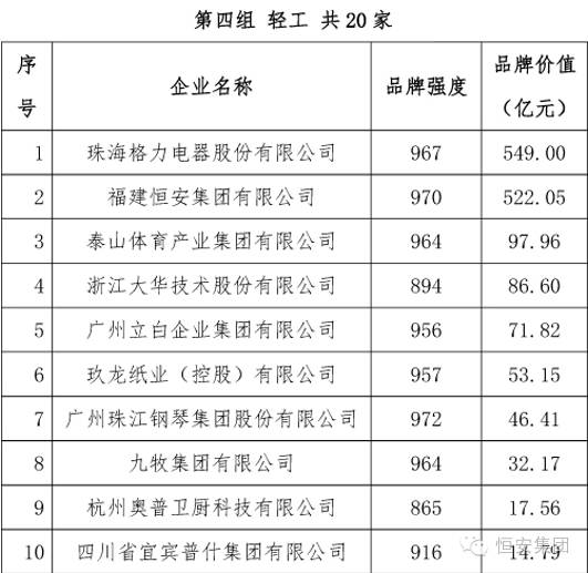 品牌价值522亿,恒安跻身中国品牌价值榜前十,位列轻工企业第二