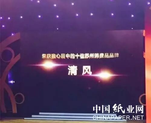 12月21日,2016年“我心目中的十佳苏州消费品”品牌评选活动颁奖典礼在苏州广电总台演播厅隆重举行,APP(中国)旗下清风品牌成为唯一获奖纸类品牌。