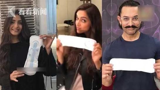 印度全民手举卫生巾拍照 呼吁为女性经期去污名化