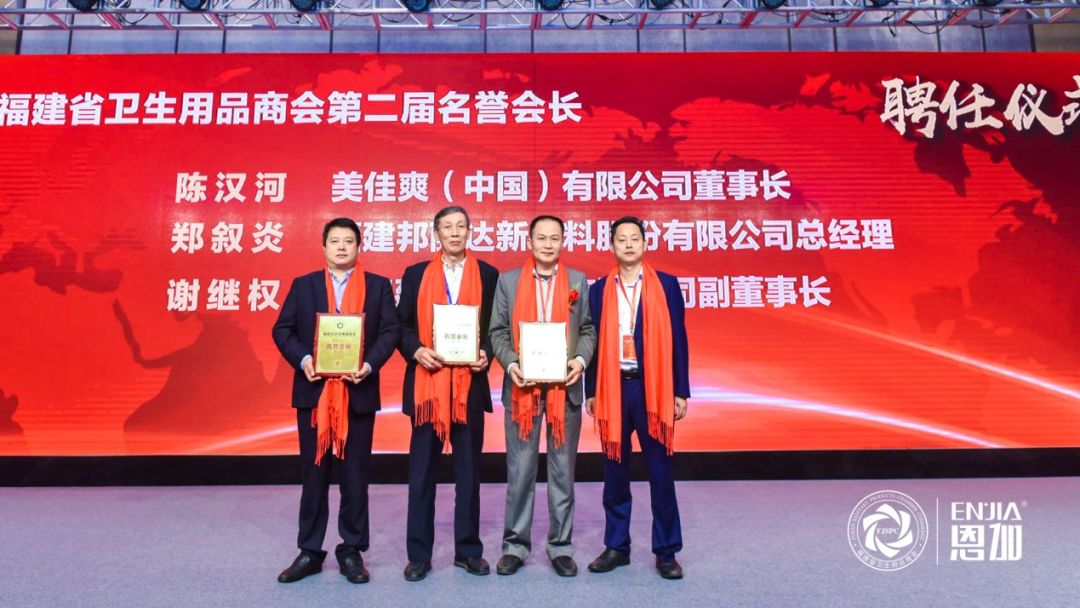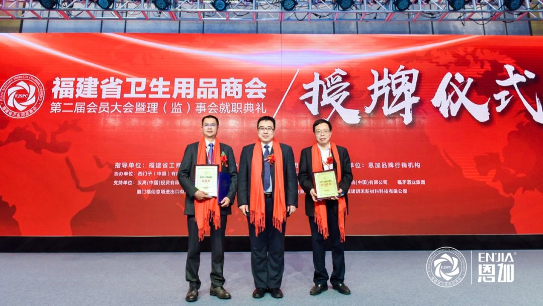 2019年1月11日,以“奋进新时代 匠心创未来”为主题的福建省卫生用品商会第二届一次会员大会暨理(监)事会就职典礼在泉州市泉商希尔顿酒店隆重举行。福建省及晋江市相关领导、行业领导及福建省卫生用品商会会员企业代表等共聚一堂。大会选举产生了新一届商会领导班子:爹地宝贝股份有限公司董事长林斌连任会长,泉州市汉威机械有限公司董事长林秉正当选执行会长,三明市普诺维机械有限公司董事长郭尚接当选监事长。