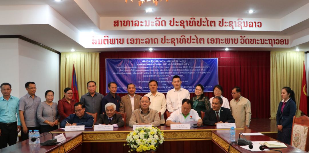12月27日,太阳纸业控股老挝有限责任公司与老挝沙湾拿吉省签订开发建设生态高效产业园协议备忘录(MOA),签字仪式在该省省政府会议大厅举行。